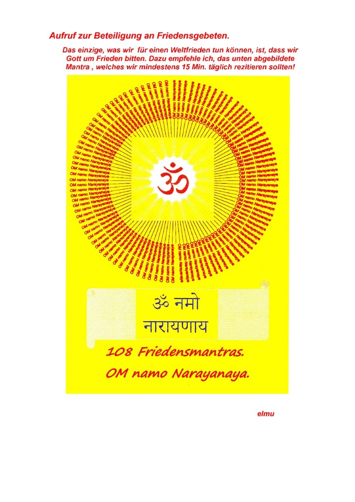 Aufruf zur Beteiliung an Weltfriedensgebeten !